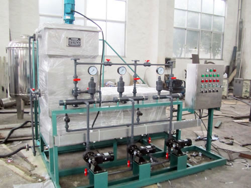 本機為整體安裝式,安裝方便,攪拌系統(tǒng)功率大并帶減振器,攪拌均勻.噪聲低,帶溶解槽筐和過濾器.藥液系統(tǒng)全部為防腐材料(環(huán)氧樹脂、PVC、PP、PE和不銹鋼等)耐腐性好。